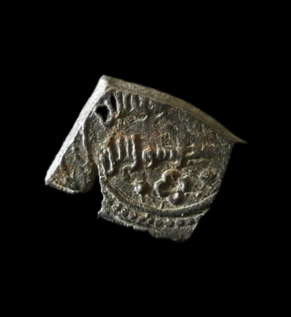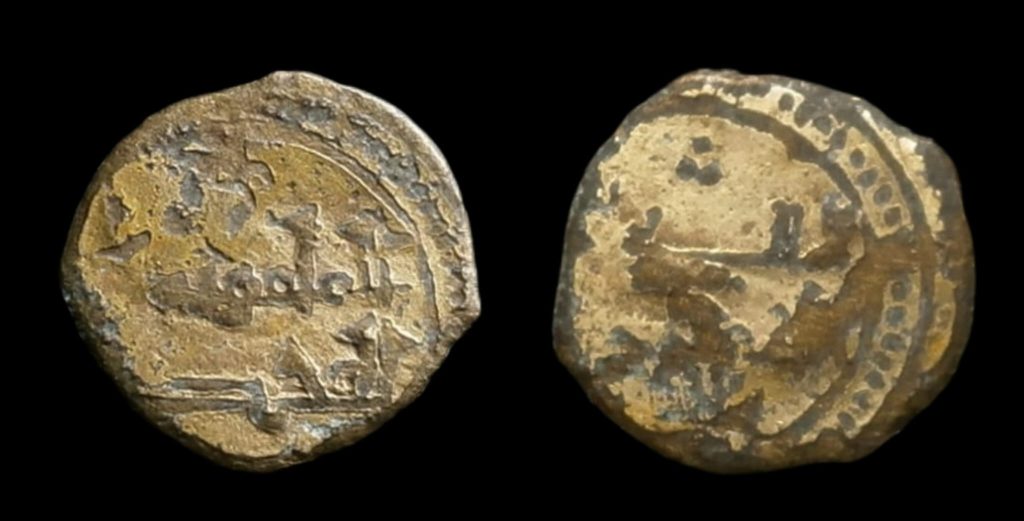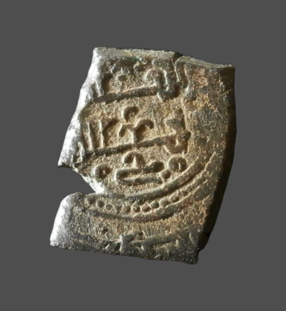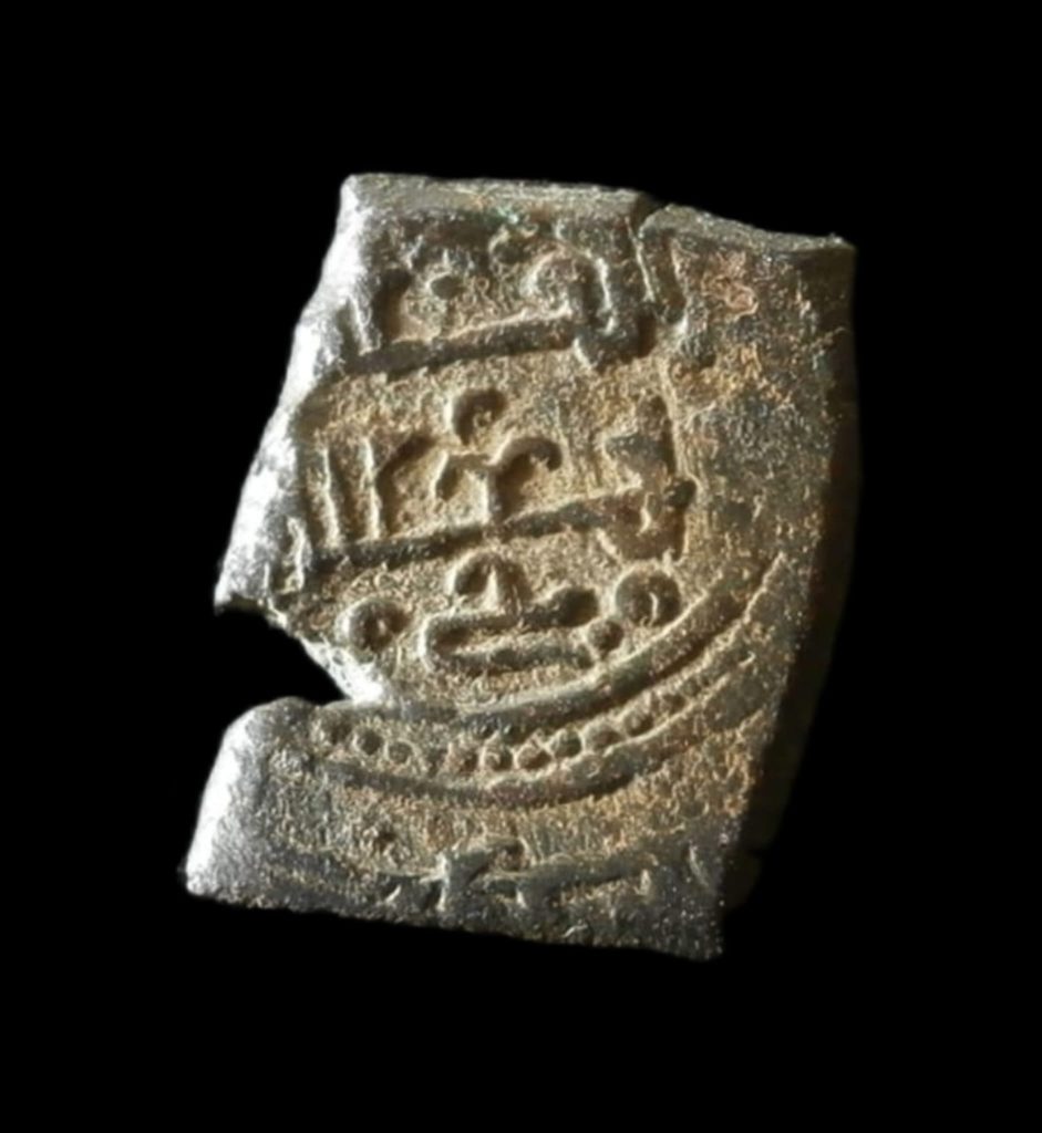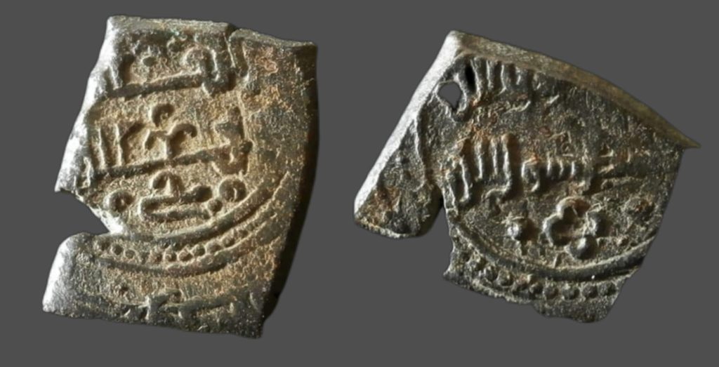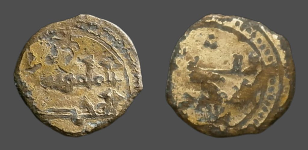 Taifa de Toledo y Valencia. Yahya al-Mamun. Fracción de dinar sin ceca ni fecha, Chapada en oro. podría ser falsa de época.