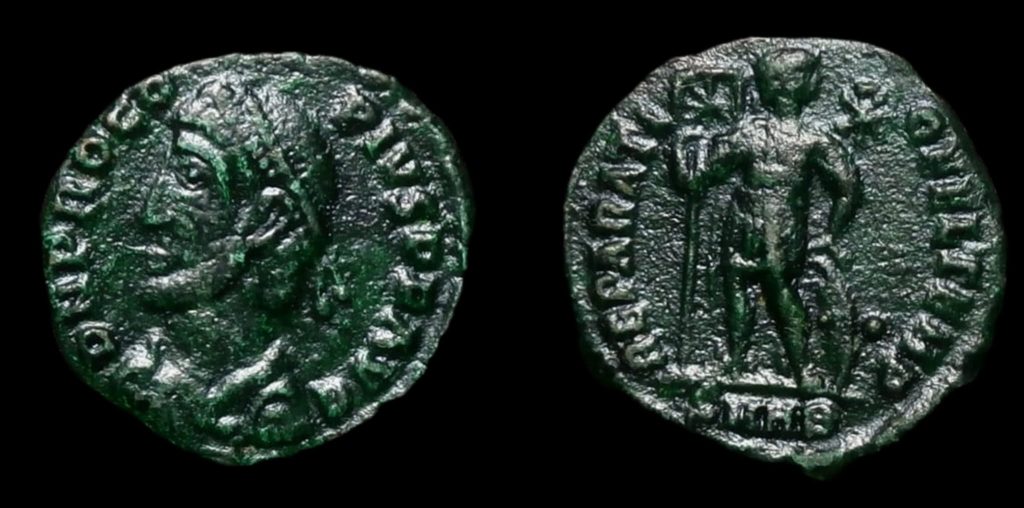 RIC 10. (MBC+). Procedente de subasta, ya venia repatinada; aún así bonito ejemplar en mano. Procopio participó en la campaña de Juliano contra los sasánidas en 363 como comandante de un grupo de ejércitos independiente. Cuando Salucio Saturnino Segundo rechazó la púrpura tras el asesinato de Juliano, Joviano fue proclamado emperador. Firmó una paz vergonzosa con Sapor II, pero murió en el viaje de regreso a Constantinopla y fue sucedido por Valentiniano I y su corregente Valente. Cuando Valente marchó a Siria en 365, Procopio, alegando haber sido designado sucesor de Juliano, fue proclamado emperador por tropas descontentas como último miembro de la dinastía constantiniana. En la batalla de Nacoleia en Frigia, fue derrotado por Valente después de que sus tropas auxiliares germánicas lo abandonaran. Fue ejecutado y, en mayo de 366, condenado a muerte por damnatio memoriae.