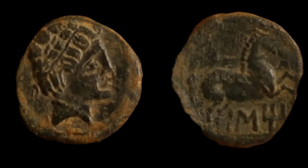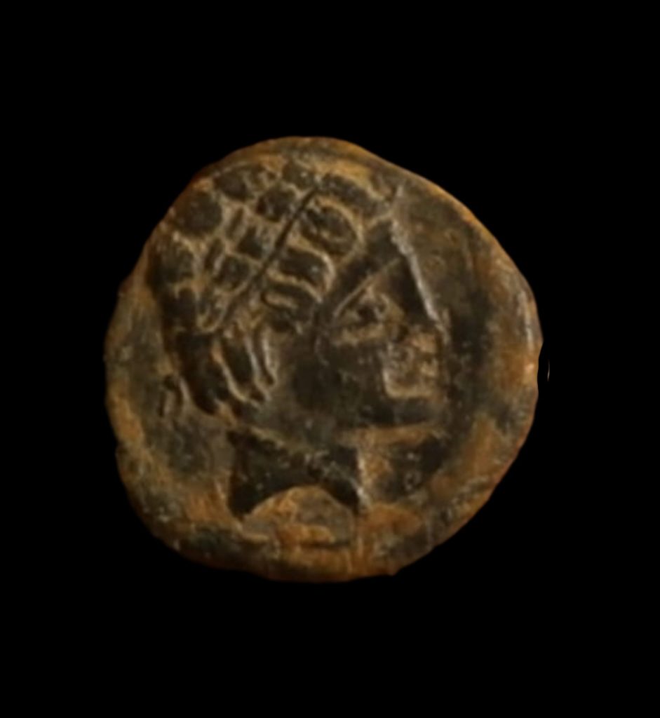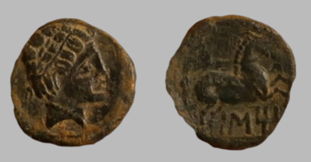 Rev.: Caballo saltando a derecha, debajo leyenda ibérica.