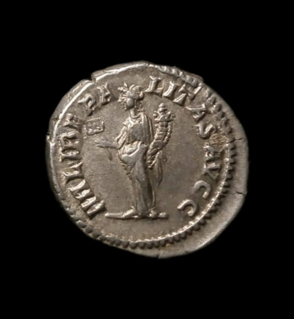 Rev.: IIII LIBERALITAS AVGG Liberalitas de pie a la izquierda, sosteniendo un ábaco en su mano derecha extendida y una cornucopia en la izquierda.